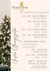 Dienstag und Mittwoch tanken wir neue Kraft und haben deshalb geschlossen